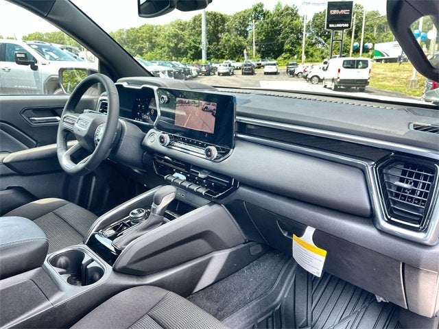 This vehicle features Canyon Safety Plus Package (Blind Zone Steering Assist w/Trailering, Rear Cross Traffic Braking, and Ultrasonic Rear Park Assist), Convenience Package (120-Volt Bed Mounted Power Outlet, 2 Rear USB Ports in Center Console (Charge-Only), Driver & Front Passenger Illuminated Visors, Dual-Zone Auto Climate Control Air Conditioning, EZ-Lift & Lower Tailgate, Front LED Fog Lamps, Inside Rear-View Auto-Dimming Mirror, Interior Overhead Courtesy Light w/Dual Reading Lamp, MultiStow Tailgate Storage Compartment, Rear of Console 120-Volt Power Outlet, Remote Vehicle Starter System, Tailgate Keyed Cylinder Lock, and Tilt & Telescopic Manual Steering Column), Preferred Equipment Group 4VL (Automatic Emergency Braking, Canyon Pro Safety, Following Distance Indicator, Forward Collision Alert, Front Pedestrian & Bicyclist Braking, IntelliBeam Automatic High Beam On/Off, and Lane Keep Assist w/Lane Departure Warning), Preferred Package (8-Way Power Driver Seat Adjuster, Heated Driver & Front Passenger Seats, and Power Driver Lumbar Control Seat Adjuster), 4WD, 1 Rear USB Port in Center Console (Charge-Only), 1st & 2nd Rows All-Weather Floor Liner (LPO), 2 1st Row USB Charge/Data Ports, 3.42 Rear Axle Ratio, 4-Way Manual Front Passenger Seat Adjuster, 4-Wheel Disc Brakes, 6 Speakers, 6-Speaker Audio System Feature, 6-Way Manual Driver Seat Adjuster, ABS brakes, Air Conditioning, Alloy wheels, AM/FM radio, Apple CarPlay/Android Auto, Auto High-beam Headlights, Automatic Stop/Start, Bedliner w/Integral Storage Compartments (LPO), Black Assist Step (LPO), Brake assist, Bumpers: body-color, Cloth Seat Trim, Compass, Delay-off headlights, Driver door bin, Driver Mode Selector, Driver vanity mirror, Dual front impact airbags, Dual front side impact airbags, Electronic Stability Control, Emergency communication system: OnStar, Front anti-roll bar, Front Bucket Seats, Front Center Armrest, Front License Plate Kit, Front Passenger Seatback Map Pocket, Front wheel independent suspension, Heated door mirrors, Illuminated entry, Low tire pressure warning, Navigation System, Occupant sensing airbag, Off-Road Suspension, Outside temperature display, Overhead airbag, Overhead console, Panic alarm, Passenger door bin, Passenger vanity mirror, Power door mirrors, Power steering, Power windows, Radio data system, Radio: 11.3 Diagonal Premium GMC Infotainment Sys, Rear reading lights, Rear step bumper, Rear window defroster, Remote keyless entry, Security system, SiriusXM w/360L, Speed control, Speed-sensing steering, Split folding rear seat, Steering wheel mounted audio controls, Stop/Start System Disable Button Engine Control, Tachometer, Tilt steering wheel, Traction control, Trip computer, Variably intermittent wipers, Wheels: 18 x 8.5 Dark Gray Painted Aluminum, Wheels: 20 Black Aluminum (LPO), Wheels: 20 x 9 Aluminum Transit, and Wireless Apple CarPlay/Wireless Android Auto.