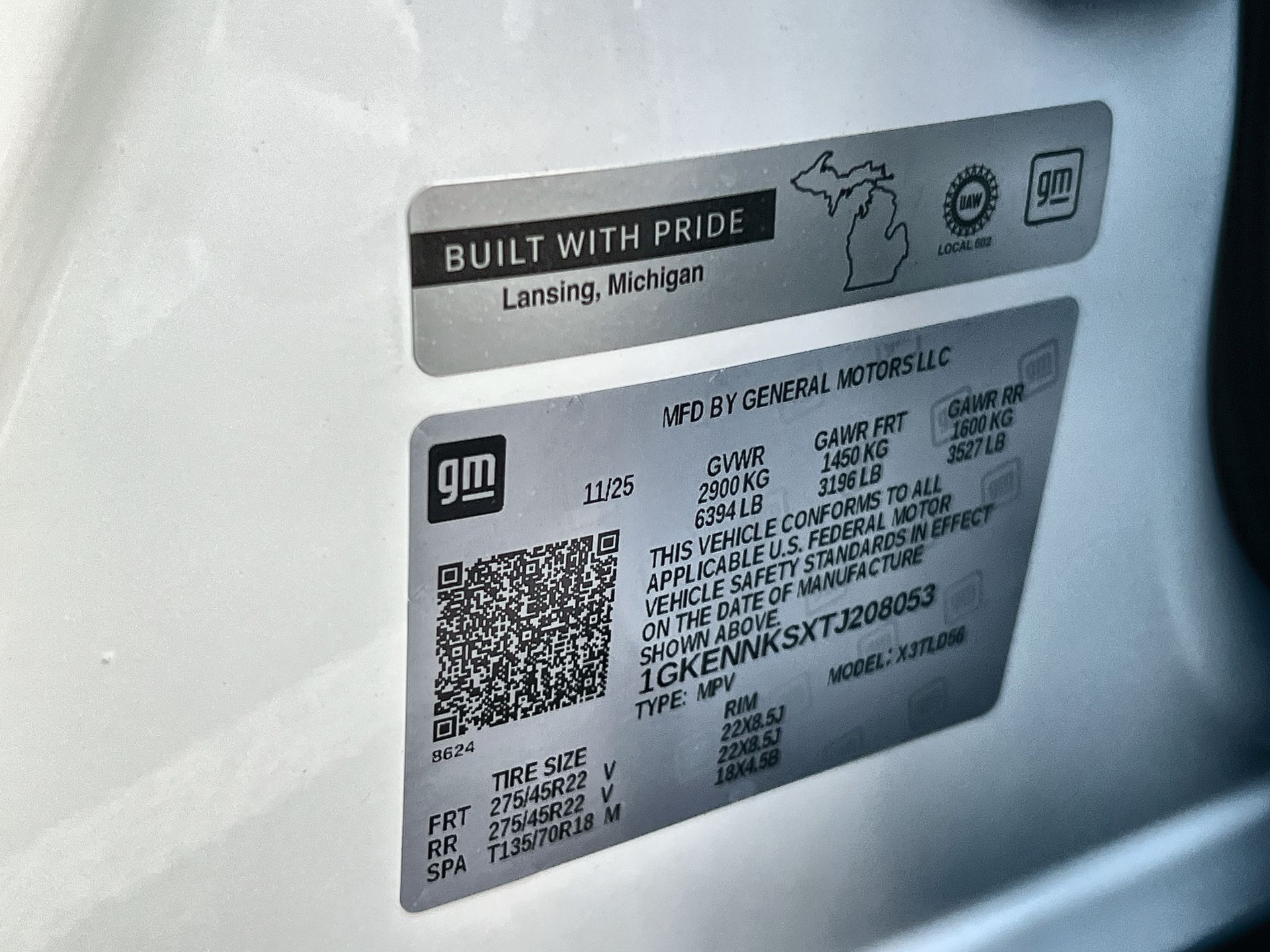 This vehicle features Black Edition (Front & Rear Black GMC Emblems (LPO), Gloss Black Roof Rails, High Gloss Black Door Upper Moldings, and Wheels: 22 x 8.5 Gloss Black Aluminum), Elevation Premium Package (3-Channel Programmable Universal Home Remote, 6-Way Power Front Passenger Seat Adjuster, 7-Passenger Seating (2-2-3 Seating Configuration), CoreTec Seat Trim, and Front Passenger Power Lumbar Seat Adjuster), Floor Liner Package (LPO) (1st & 2nd Row All-Weather Floor Liner (LPO), 3rd Row All-Weather Floor Liner (LPO), and Integrated Cargo Liner (LPO)), Luxury Package (8 Diagonal Head-Up Display, Heated Rear Outboard Seating Positions, Heated Wiper Park, and Laminated Acoustic Glass), Preferred Equipment Group 4SD, AWD, After Dark Cloth, 12 Speakers, 18 x 7.5 Aluminum Wheels, 3.49 Final Drive Axle Ratio, 3rd row seats: split-bench, 4-Way Manual Front Passenger Seat Adjuster, 4-Wheel Disc Brakes, 8-Passenger Seating (2-3-3 Seating Configuration), 8-Way Power Driver Seat Adjuster, ABS brakes, Air Conditioning, Alloy wheels, AM/FM radio: SiriusXM with 360L, Apple CarPlay/Android Auto, Auto High-beam Headlights, Automatic temperature control, Bodyside moldings, Bose Premium 12-Speaker System w/Sub-Woofer, Brake assist, Bumpers: body-color, Cloth Seat Trim, Compass, Delay-off headlights, Driver 2-Way Power Lumbar Seat Adjuster, Driver door bin, Driver vanity mirror, Dual front impact airbags, Dual front side impact airbags, Electronic Stability Control, Emergency communication system: OnStar Services capable, Exterior Parking Camera Rear, Four wheel independent suspension, Front anti-roll bar, Front Bucket Seats, Front Center Armrest, Front dual zone A/C, Front fog lights, Front License Plate Bracket, Front reading lights, Fully automatic headlights, Heated door mirrors, Heated Driver & Front Passenger Seats, Heated front seats, Heated steering wheel, Illuminated entry, Leather steering wheel, Low tire pressure warning, Navigation System, Occupant sensing airbag, Outside temperature display, Overhead airbag, Overhead console, Panic alarm, Panoramic Power Sunroof w/Sunshade, Passenger door bin, Passenger vanity mirror, Performance Suspension, Power door mirrors, Power driver seat, Power Liftgate, Power steering, Power windows, Radio data system, Radio: 15 Premium GMC Infotainment System, Rear air conditioning, Rear anti-roll bar, Rear reading lights, Rear seat center armrest, Rear side impact airbag, Rear window defroster, Rear window wiper, Remote keyless entry, Security system, SiriusXM w/360L, Speed control, Speed-sensing steering, Split folding rear seat, Spoiler, Sport steering wheel, Steering wheel mounted audio controls, Tachometer, Telescoping steering wheel, Tilt steering wheel, Traction control, Trip computer, Turn signal indicator mirrors, Variably intermittent wipers, and Voltmeter.