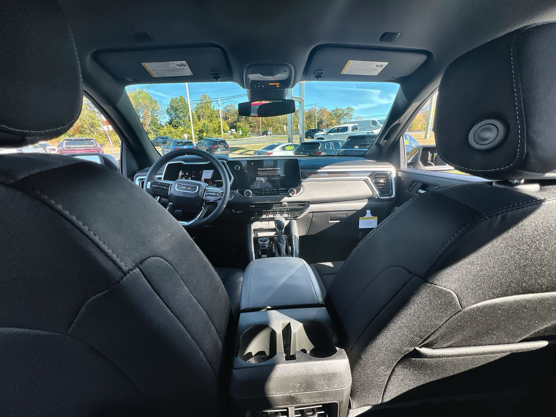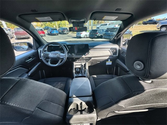 This vehicle features Canyon Safety Plus Package (Blind Zone Steering Assist with Trailering, Rear Cross Traffic Braking, and Ultrasonic Rear Park Assist), Preferred Equipment Group 4VL (Automatic Emergency Braking, Canyon Pro Safety, Following Distance Indicator, Forward Collision Alert, Front Pedestrian and Bicyclist Braking, IntelliBeam Automatic High Beam on/Off, and Lane Keep Assist with Lane Departure Warning), 4WD, 1 Rear USB Port in Center Console (Charge-Only), 1st and 2nd Rows All-Weather Floor Liner, 2 1st Row USB Charge/Data Ports, 3.42 Rear Axle Ratio, 4-Way Manual Front Passenger Seat Adjuster, 4-Wheel Disc Brakes, 6 Speakers, 6-Speaker Audio System Feature, 6-Way Manual Driver Seat Adjuster, ABS brakes, Air Conditioning, Alloy wheels, AM/FM radio: SiriusXM with 360L, Apple CarPlay/Android Auto, Auto High-beam Headlights, Automatic Stop/Start, Black Assist Steps, Brake assist, Bumpers: body-color, Cloth Seat Trim, Compass, Delay-off headlights, Driver door bin, Driver Mode Selector, Driver vanity mirror, Dual front impact airbags, Dual front side impact airbags, Electronic Stability Control, Emergency communication system: OnStar, Front anti-roll bar, Front Bucket Seats, Front Center Armrest, Front License Plate Kit, Front Passenger Seatback Map Pocket, Front wheel independent suspension, Heated door mirrors, Illuminated entry, Low tire pressure warning, Navigation System, Occupant sensing airbag, Off-Road Suspension, Outside temperature display, Overhead airbag, Overhead console, Panic alarm, Passenger door bin, Passenger vanity mirror, Power door mirrors, Power steering, Power windows, Radio data system, Radio: 11.3 Diagonal Premium GMC Infotainment System, Rear reading lights, Rear step bumper, Rear window defroster, Remote keyless entry, Remote Start Kit with 2 Key Fobs, Security system, SiriusXM with 360L, Speed control, Speed-sensing steering, Split folding rear seat, Spray-on Bedliner with GMC Logo, Steering wheel mounted audio controls, Stop/Start System Disable Button Engine Control, Tachometer, Tilt steering wheel, Traction control, Trip computer, Variably intermittent wipers, Wheels: 18 x 8.5 Gloss Black Finish Aluminum, and Wireless Apple CarPlay/Wireless Android Auto.