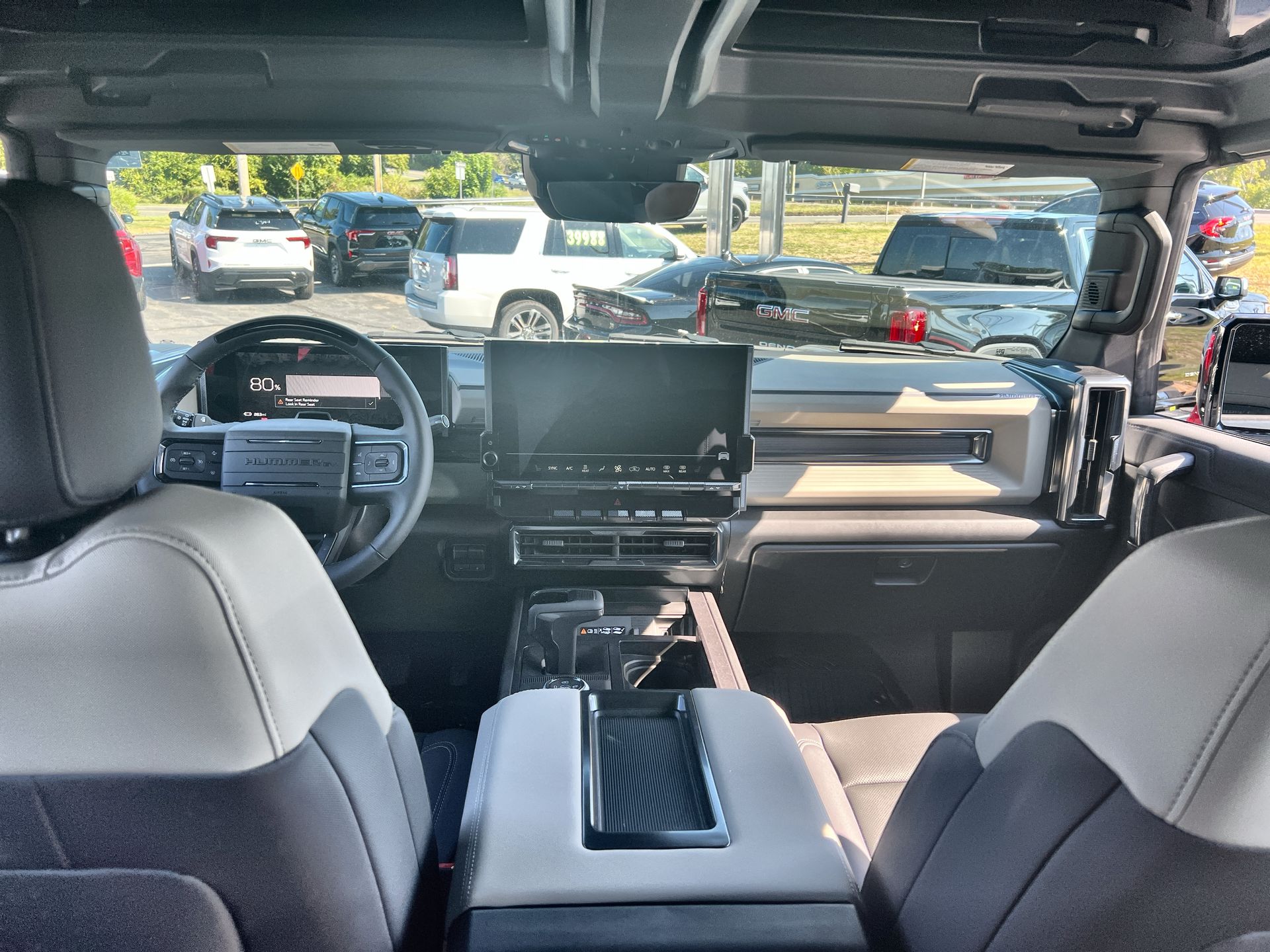 This vehicle features 12-Way Power Driver Seat Adjuster, 12-Way Power Passenger Seat Adjuster, 13.26 Final Drive Ratio, 14 Speakers, 4-Wheel Disc Brakes, 5G Vehicle Connectivity, ABS brakes, Adaptive suspension, Air Conditioning, Alloy wheels, AM/FM radio: SiriusXM with 360L, Auto High-beam Headlights, Auto-dimming door mirrors, Auto-dimming Rear-View mirror, Automatic temperature control, Bose Premium 14-Speaker Surround Sound System, Brake assist, Compass, Delay-off headlights, Driver door bin, Driver vanity mirror, Dual front impact airbags, Dual front side impact airbags, Electronic Stability Control, Emergency communication system: OnStar, Four wheel independent suspension, Front and Rear Air Ride Adaptive Suspension, Front anti-roll bar, Front Bucket Seats, Front Bucket Seats with Center Console, Front Center Armrest, Front dual zone A/C, Front License Plate Kit, Front reading lights, Garage door transmitter, Google Automotive Services Capable, Heated door mirrors, Heated Driver and Front Passenger Seats, Heated front seats, Heated rear seats, Heated steering wheel, Illuminated entry, Low tire pressure warning, Memory seat, Navigation System, Occupant sensing airbag, Outside temperature display, Overhead console, Panic alarm, Passenger door bin, Passenger vanity mirror, Power door mirrors, Power driver seat, Power passenger seat, Power steering, Power windows, Premium Leather-Alternative Seating Surfaces, Radio data system, Radio: 13.4 Diagonal Premium GMC Infotainment System, Rain sensing wipers, Rear air conditioning, Rear reading lights, Rear seat center armrest, Rear window defroster, Remote keyless entry, Security system, SiriusXM with 360L Trial Subscription, Speed control, Speed-sensing steering, Split folding rear seat, Steering wheel memory, Steering wheel mounted audio controls, Telescoping steering wheel, Tilt steering wheel, Traction control, Trip computer, Variably intermittent wipers, Ventilated Driver and Front Passenger Seats, Ventilated front seats, and Wheels: 22 x 9.5 Gloss Black Painted Aluminum.