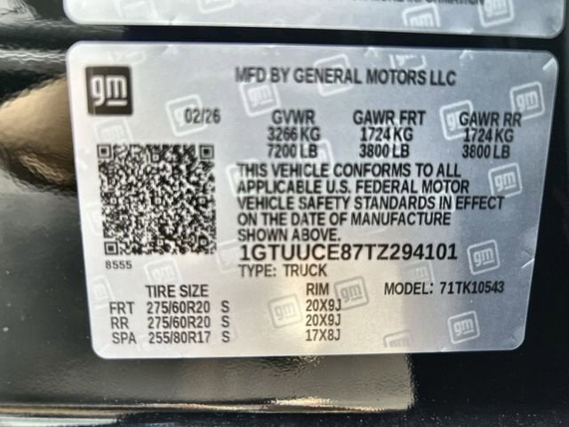 This vehicle features Cloth Rear Seat with Storage Package, Elevation Black Package (6 Rectangular Black Tubular Assist Steps, All-Weather Floor Liner, Black GMC Emblems, and Black Sierra Nameplates), Elevation Premium Package (Leather-Appointed Seat Trim and Spray-on Pickup Bedliner with GMC Logo), High Capacity Suspension Package, Preferred Equipment Group 3SB (10-Way Power Driver Seat Adjuster with Lumbar, 120-Volt Bed Mounted Power Outlet, 120-Volt Interior Power Outlet, 2 Charge/Data USB Ports, 2 Type-C Charge-Only Rear USB Ports, 4-Way Manual Passenger Seat Adjuster, 6-Speaker Audio System Feature, Auto-Locking Rear Differential, Body Color Header with Gloss Black Mesh Grille Bars, Color-Keyed Carpeting Floor Covering, Deep-Tinted Glass, Electric Rear-Window Defogger, Front 40/20/40 Split-Bench Seat, Front Frame-Mounted Black Recovery Hooks, Front Rubberized-Vinyl Floor Mats, HD Rear Vision Camera, Heated Driver and Front Outboard Passenger Seating, Integrated Trailer Brake Controller, Keyless Open and Start, LED Cargo Area Lighting, Manual Tilt-Wheel and Telescoping Steering Column, OnStar Services Capable, Power Door Locks, Power Front Windows with Driver Express Up/Down, Power Front Windows with Passenger Express Down, Power Rear Windows with Express Down, Push Button Start, Rear Rubberized-Vinyl Floor Mats, Remote Vehicle Starter System, SiriusXM with 360L Trial Subscription, Steering Wheel Audio Controls, Theft Deterrent System (unauthorized Entry), and Wi-Fi Hotspot Capable), Preferred Package (Adaptive Cruise Control, Hitch View, in-Vehicle Trailering System App, Power Sliding Rear Window with Rear Defogger, Premium Bose 7-Speaker Sound System, Rear Wheelhouse Liners, and Universal Home Remote), Sierra Safety Plus Package (HD Surround Vision, High Gloss Black Mirror Caps, Perimeter Lighting, Rear Cross Traffic Braking, Rear Pedestrian Detection, Trailer Camera Provisions, Trailer Side Blind Zone Alert, and Ultrasonic Front and Rear Park Assist), Trailering Package (Hitch Guidance), Up-Level Rear Seat with Storage Package, X31 Off-Road and Protection Package, X31 Off-Road Package (Dual Exhaust System, Heavy-Duty Air Filter, Hill Descent Control, Off-Road Suspension, and X31 Hard Badge), 10-Speed Automatic, 4WD, Black Leather, 2 Charge/Data USB Ports Inside Center Console, 220 Amp Alternator, 3.23 Rear Axle Ratio, 4-Wheel Disc Brakes, 6 Speakers, ABS brakes, Air Conditioning, Alloy wheels, AM/FM radio: SiriusXM with 360L, Apple CarPlay/Android Auto, Auto High-beam Headlights, Automatic Emergency Braking, Automatic temperature control, Bed View Camera, Brake assist, Buckle to Drive, Bumpers: body-color, Cloth Seat Trim, Compass, Delay-off headlights, Driver door bin, Driver vanity mirror, Dual front impact airbags, Dual front side impact airbags, Electronic Precision Shift, Electronic Stability Control, Emergency communication system: OnStar, Engine Block Heater, Floor-Mounted Center Console, Following Distance Indicator, Forward Collision Alert, Front anti-roll bar, Front Bucket Seats, Front Center Armrest w/Storage, Front dual zone A/C, Front fog lights, Front License Plate Kit, Front Pedestrian Braking, Front reading lights, Front wheel independent suspension, Fully automatic headlights, GMC MultiPro Tailgate, Heated door mirrors, Heated front seats, Heated steering wheel, Illuminated entry, IntelliBeam Automatic High Beam on/Off, Lane Keep Assist with Lane Departure Warning, Low tire pressure warning, Navigation System, Occupant sensing airbag, Outside temperature display, Overhead airbag, Overhead console, Panic alarm, Passenger door bin, Passenger vanity mirror, Power door mirrors, Power driver seat, Power steering, Power Sunroof, Power windows, Radio data system, Radio: Premium GMC Infotainment Audio System, Rear reading lights, Rear seat cent