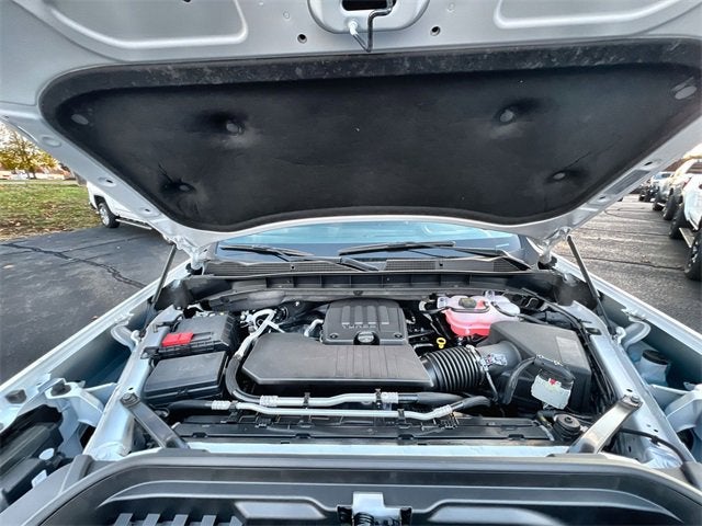 This vehicle features High Capacity Suspension Package, Trailering Package (Hitch Guidance), 8-Speed Automatic, 4WD, Black Cloth, 120-Volt Bed Mounted Power Outlet, 120-Volt Interior Power Outlet, 2 Charge/Data USB Ports, 2 Type-C Charge-Only Rear USB Ports, 220 Amp Alternator, 3.42 Rear Axle Ratio, 4-Way Manual Passenger Seat Adjuster, 4-Wheel Disc Brakes, 6 Speakers, 6-Speaker Audio System Feature, ABS brakes, Air Conditioning, Apple CarPlay/Android Auto, Auto High-beam Headlights, Auto-Locking Rear Differential, Automatic Emergency Braking, Brake assist, Buckle to Drive, Cloth Seat Trim, Color-Keyed Carpeting Floor Covering, Compass, Deep-Tinted Glass, Delay-off headlights, Driver door bin, Dual front impact airbags, Dual front side impact airbags, Electric Rear-Window Defogger, Electronic Stability Control, Emergency communication system: OnStar, Following Distance Indicator, Forward Collision Alert, Front 40/20/40 Split-Bench Seat, Front anti-roll bar, Front Center Armrest w/Storage, Front Frame-Mounted Black Recovery Hooks, Front License Plate Kit, Front Pedestrian Braking, Front reading lights, Front Rubberized-Vinyl Floor Mats, Front wheel independent suspension, Fully automatic headlights, GMC MultiPro Tailgate, HD Rear Vision Camera, Illuminated entry, Integrated Trailer Brake Controller, LED Cargo Area Lighting, Low tire pressure warning, Occupant sensing airbag, OnStar Services Capable, Outside temperature display, Overhead airbag, Overhead console, Panic alarm, Passenger door bin, Passenger vanity mirror, Power Door Locks, Power steering, Power windows, Push Button Start, Radio data system, Rear reading lights, Rear Rubberized-Vinyl Floor Mats, Rear step bumper, Remote keyless entry, Remote Vehicle Starter System, Speed control, Speed-sensing steering, Split folding rear seat, Tachometer, Tilt steering wheel, Traction control, Trip computer, Variably intermittent wipers, Voltmeter, Wi-Fi Hotspot Capable, and Wireless Apple CarPlay/Wireless Android Auto.