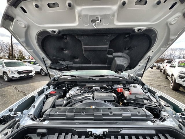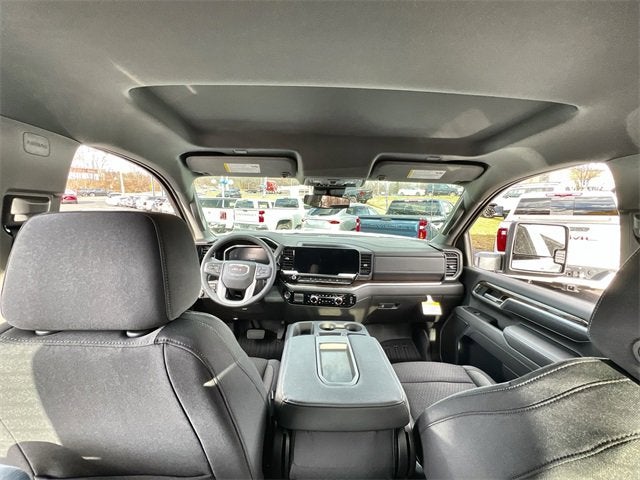 This vehicle features Assist Step and Floor Liner Package (All-Weather Floor Liners), Cloth Rear Seat with Storage Package, Gooseneck/5th Wheel Prep Package (Spray-on Pickup Bedliner with GMC Logo), Preferred Equipment Group 3SA (120-Volt Bed Mounted Power Outlet, 120-Volt Instrument Panel Power Outlet, 2 Charge-Only Rear USB Ports, 2 Charge/Data USB Ports, 2-Speed Electronic Shift Transfer Case, 4-Way Manual Driver Seat Adjuster, Chrome Surround Grille with Chrome Insert Bars, Deep-Tinted Glass, Keyless Open and Start, OnStar Services Capable, Push Button Start, SiriusXM with 360L Trial Subscription, Steering Wheel Audio Controls, and Wireless Phone Projection), Preferred Package (Adaptive Cruise Control, Hitch Guidance with Hitch View, in-Vehicle Trailering System App, LED Cargo Area Lighting, Power Sliding Rear Window with Defogger, and Universal Home Remote), Remote Start Package (Electric Rear-Window Defogger, Remote Vehicle Starter System, and Unauthorized Entry Theft-Deterrent System), SLE Convenience Package (10-Way Power Driver Seat Adjuster with Lumbar, A/C with Dual-Zone Automatic Climate Control, LED Fog Lamps, LED Smoked Amber Roof Marker Lamps, and Manual Tilt-Wheel/Telescoping Steering Column), SLE Heated Package (Heated Driver and Front Outboard Passenger Seats and Heated Steering Wheel), Snow Plow Prep/Camper Package (220-Amp Alternator), Suspension Package, 10-Speed Automatic, 4WD, Jet Black Cloth, 17 Machined Aluminum Wheels, 4-Way Manual Passenger Seat Adjuster, 4-Wheel Disc Brakes, 6 Speakers, 6-Speaker Audio System Feature, 6 Rectangular Chromed Tubular Assist Steps, ABS brakes, Air Conditioning, Alloy wheels, AM/FM radio: SiriusXM with 360L, Apple CarPlay/Android Auto, Auto High-beam Headlights, Automatic Emergency Braking, Brake assist, Buckle to Drive, Bumpers: chrome, Cloth Seat Trim, Compass, Delay-off headlights, Driver door bin, Driver vanity mirror, Dual front impact airbags, Dual front side impact airbags, Electronic Stability Control, Emergency communication system: OnStar, Engine Block Heater, Exhaust Brake, Following Distance Indicator, Forward Collision Alert, Front 40/20/40 Split-Bench Seats, Front anti-roll bar, Front Center Armrest w/Storage, Front License Plate Kit, Front Pedestrian Braking, Front reading lights, Front wheel independent suspension, Fully automatic headlights, Heated door mirrors, Heavy-Duty 80 Amp Battery, High Idle Switch, Illuminated entry, IntelliBeam Automatic High Beam on/Off, Lane Departure Warning System, Low tire pressure warning, Occupant sensing airbag, Outside temperature display, Overhead airbag, Overhead console, Panic alarm, Passenger door bin, Passenger vanity mirror, Pickup Box, Power door mirrors, Power steering, Power windows, Premium audio system: Premium GMC Infotainment System, Radio: AM/FM Stereo with Premium GMC Infotainment System, Rear reading lights, Rear step bumper, Rear Underseat Storage, Rear Wheelhouse Liners, Remote keyless entry, Speed control, Split folding rear seat, Steering wheel mounted audio controls, Tachometer, Tilt steering wheel, Traction control, Trip computer, Turn signal indicator mirrors, Variably intermittent wipers, Voltmeter, and Winter Grille Cover.