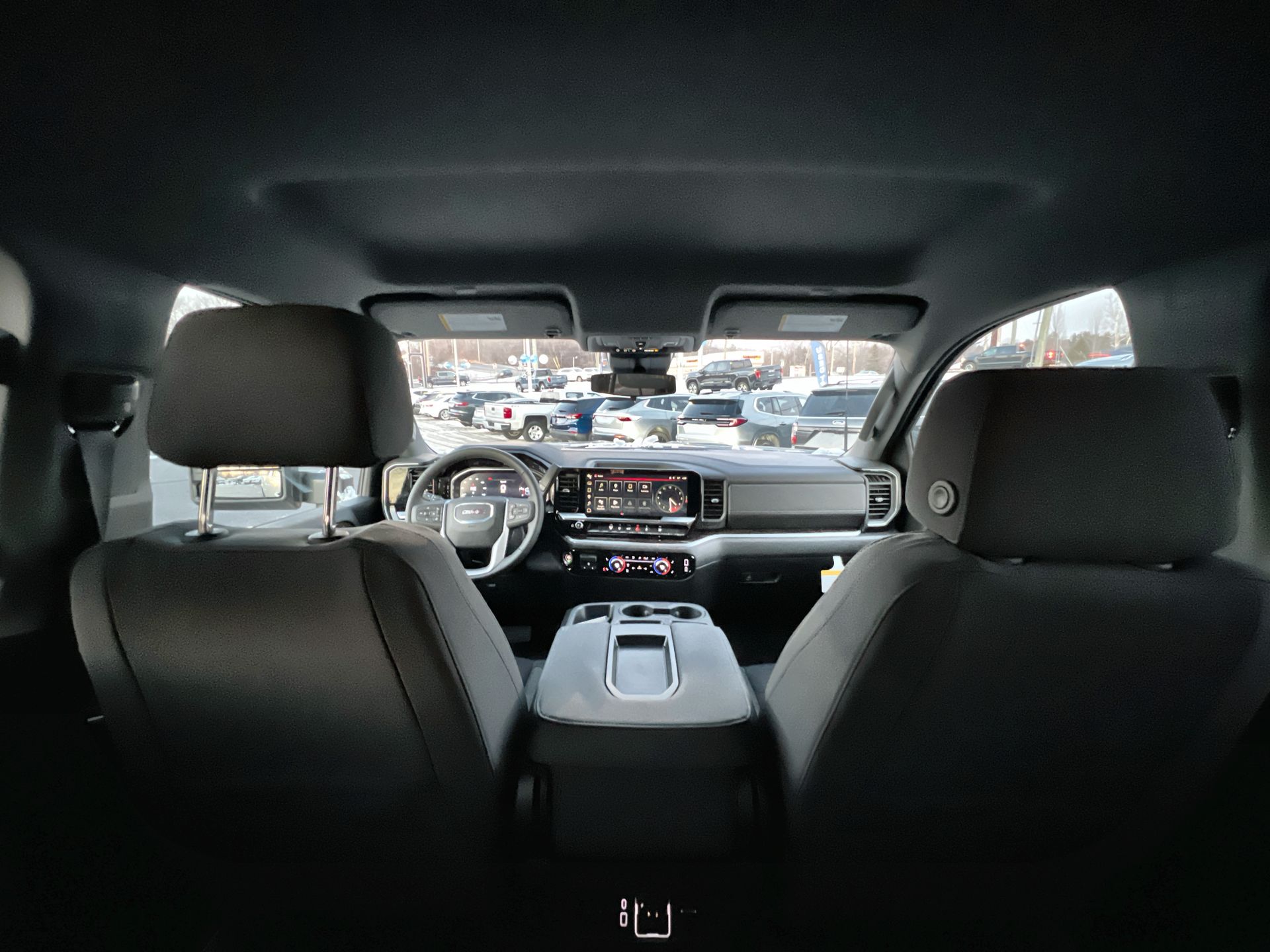 This vehicle features Assist Step and Floor Liner Package (All-Weather Floor Liners), Cloth Rear Seat with Storage Package, Gooseneck/5th Wheel Prep Package (Spray-on Pickup Bedliner with GMC Logo), Preferred Equipment Group 3SA (120-Volt Bed Mounted Power Outlet, 120-Volt Instrument Panel Power Outlet, 2 Charge-Only Rear USB Ports, 2 Charge/Data USB Ports, 2-Speed Electronic Shift Transfer Case, 4-Way Manual Driver Seat Adjuster, Chrome Surround Grille with Chrome Insert Bars, Deep-Tinted Glass, Keyless Open and Start, OnStar Services Capable, Push Button Start, SiriusXM with 360L Trial Subscription, Steering Wheel Audio Controls, and Wireless Phone Projection), Preferred Package (Adaptive Cruise Control, Hitch Guidance with Hitch View, in-Vehicle Trailering System App, LED Cargo Area Lighting, Power Sliding Rear Window with Defogger, and Universal Home Remote), Remote Start Package (Electric Rear-Window Defogger, Remote Vehicle Starter System, and Unauthorized Entry Theft-Deterrent System), SLE Convenience Package (10-Way Power Driver Seat Adjuster with Lumbar, A/C with Dual-Zone Automatic Climate Control, LED Fog Lamps, LED Smoked Amber Roof Marker Lamps, and Manual Tilt-Wheel/Telescoping Steering Column), SLE Heated Package (Heated Driver and Front Outboard Passenger Seats and Heated Steering Wheel), Snow Plow Prep/Camper Package (220-Amp Alternator), Suspension Package, 10-Speed Automatic, 4WD, Jet Black Cloth, 17 Machined Aluminum Wheels, 4-Way Manual Passenger Seat Adjuster, 4-Wheel Disc Brakes, 6 Speakers, 6-Speaker Audio System Feature, 6 Rectangular Chromed Tubular Assist Steps, ABS brakes, Air Conditioning, Alloy wheels, AM/FM radio: SiriusXM with 360L, Apple CarPlay/Android Auto, Auto High-beam Headlights, Automatic Emergency Braking, Brake assist, Buckle to Drive, Bumpers: chrome, Cloth Seat Trim, Compass, Delay-off headlights, Driver door bin, Driver vanity mirror, Dual front impact airbags, Dual front side impact airbags, Electronic Stability Control, Emergency communication system: OnStar, Engine Block Heater, Exhaust Brake, Following Distance Indicator, Forward Collision Alert, Front 40/20/40 Split-Bench Seats, Front anti-roll bar, Front Center Armrest w/Storage, Front License Plate Kit, Front Pedestrian Braking, Front reading lights, Front wheel independent suspension, Fully automatic headlights, Heated door mirrors, Heavy-Duty 80 Amp Battery, High Idle Switch, Illuminated entry, IntelliBeam Automatic High Beam on/Off, Lane Departure Warning System, Low tire pressure warning, Occupant sensing airbag, Outside temperature display, Overhead airbag, Overhead console, Panic alarm, Passenger door bin, Passenger vanity mirror, Pickup Box, Power door mirrors, Power steering, Power windows, Premium audio system: Premium GMC Infotainment System, Radio: AM/FM Stereo with Premium GMC Infotainment System, Rear reading lights, Rear step bumper, Rear Underseat Storage, Rear Wheelhouse Liners, Remote keyless entry, Speed control, Split folding rear seat, Steering wheel mounted audio controls, Tachometer, Tilt steering wheel, Traction control, Trip computer, Turn signal indicator mirrors, Variably intermittent wipers, Voltmeter, and Winter Grille Cover.