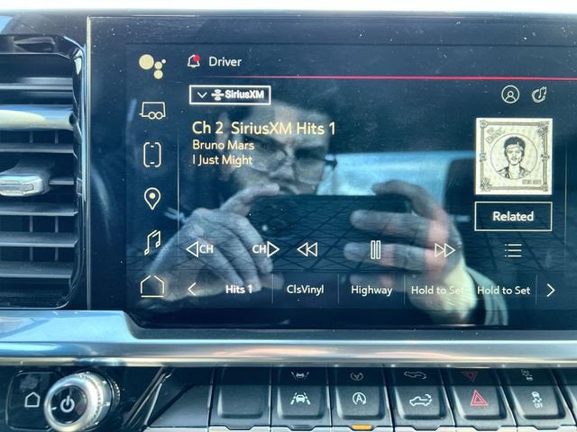 This vehicle features Preferred Equipment Group 3SA (120-Volt Bed Mounted Power Outlet, 120-Volt Instrument Panel Power Outlet, 2 Charge/Data USB Ports, 2 Type-C Charge-Only Rear USB Ports, Chrome Header w/Medium Silver Grille Insert Bars, Color-Keyed Carpeting Floor Covering, Compass, Deep-Tinted Glass, Electrical Steering Column Lock, Front Frame-Mounted Black Recovery Hooks, Front Rubberized-Vinyl Floor Mats, GMC Connected Access Capable, HD Rear Vision Camera, Keyless Open & Start, OnStar & GMC Connected Services Capable, Power Door Locks, Power Front Windows w/Driver Express Up/Down, Power Front Windows w/Passenger Express Down, Power Rear Windows w/Express Down, Push Button Start, Rear Rubberized-Vinyl Floor Mats, SiriusXM w/360L, Steering Wheel Audio Controls, Wi-Fi Hotspot Capable, and Wireless Phone Projection), Remote Start Package (Electric Rear-Window Defogger, Remote Vehicle Starter System, and Theft Deterrent System (Unauthorized Entry)), SLE Convenience Package (10-Way Power Driver Seat Adjuster w/Lumbar, Dual-Zone Automatic Climate Control, Heated Driver & Front Outboard Passenger Seating, Heated Steering Wheel, LED Cargo Area Lighting, and Manual Tilt-Wheel & Telescoping Steering Column), SLE Value Package (Auto-Locking Rear Differential), Standard Suspension Package, Trailering Package (Hitch Guidance), Car Bravo Certified, 10-Speed Automatic, 4WD, Black Cloth, 170 Amp Alternator, 220 Amp Alternator, 3 Years of OnStar & Connected Services Plan, 4-Way Manual Passenger Seat Adjuster, 4-Wheel Disc Brakes, 6 Speakers, 6-Speaker Audio System Feature, ABS brakes, Air Conditioning, Alloy wheels, AM/FM radio: SiriusXM with 360L, Apple CarPlay/Android Auto, Auto High-beam Headlights, Automatic Emergency Braking, Automatic temperature control, Auxiliary External Transmission Oil Cooler, Brake assist, Buckle to Drive, Bumpers: chrome, Cloth Seat Trim, Delay-off headlights, Driver door bin, Driver vanity mirror, Dual front impact airbags, Dual front side impact airbags, Electronic Stability Control, Emergency communication system: OnStar and GMC Connected Services capable, Exterior Parking Camera Rear, External Engine Oil Cooling, Following Distance Indicator, Forward Collision Alert, Front 40/20/40 Split-Bench Seat, Front anti-roll bar, Front Center Armrest w/Storage, Front dual zone A/C, Front License Plate Kit, Front Pedestrian Braking, Front reading lights, Front wheel independent suspension, Fully automatic headlights, Heated door mirrors, Heated front seats, Heated steering wheel, Illuminated entry, IntelliBeam Automatic High Beam On/Off, Lane Keep Assist w/Lane Departure Warning, Low tire pressure warning, Navigation System, Not Equipped w/Dynamic Fuel Management, Not Equipped w/Hood Insulator, Not Equipped w/Steering Column Lock, Occupant sensing airbag, Outside temperature display, Overhead airbag, Overhead console, Panic alarm, Passenger door bin, Passenger vanity mirror, Power door mirrors, Power driver seat, Power steering, Power windows, Premium audio system: GMC Infotainment System, Radio data system, Radio: Premium GMC Infotainment Audio System, Rear reading lights, Rear step bumper, Rear window defroster, Remote keyless entry, Security system, Speed control, Speed-sensing steering, Split folding rear seat, Steering wheel mounted audio controls, Tachometer, Telescoping steering wheel, Tilt steering wheel, Traction control, Trip computer, Variably intermittent wipers, Voltmeter, and Wheels: 17 x 8 Bright Silver Painted Aluminum. Recent Arrival! Odometer is 14931 miles below market average!