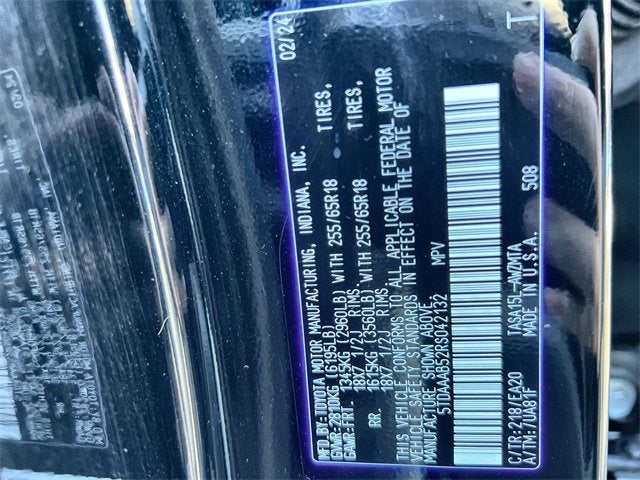 2024 Toyota Grand Highlander AWD 8-Speed Automatic 2.4L 4-CylinderThis vehicle features 3.33 Axle Ratio, 3rd row seats: split-bench, 4-Wheel Disc Brakes, ABS brakes, Air Conditioning, Alloy wheels, AM/FM radio: SiriusXM, Apple CarPlay/Android Auto, Auto High-beam Headlights, Auto-dimming Rear-View mirror, Automatic temperature control, Brake assist, Bumpers: body-color, Delay-off headlights, Driver door bin, Driver vanity mirror, Dual front impact airbags, Dual front side impact airbags, Electronic Stability Control, Emergency communication system: Safety Connect (up to 10-year trial subscription), Exterior Parking Camera Rear, Four wheel independent suspension, Front anti-roll bar, Front Bucket Seats, Front Center Armrest, Front dual zone A/C, Front reading lights, Fully automatic headlights, Garage door transmitter: HomeLink, Heated door mirrors, Heated front seats, Illuminated entry, Knee airbag, Leather Shift Knob, Leather steering wheel, Low tire pressure warning, Navigation system: Drive Connect Cloud Navigation (1-year trial subscription), Occupant sensing airbag, Outside temperature display, Overhead airbag, Overhead console, Panic alarm, Passenger door bin, Passenger vanity mirror, Power door mirrors, Power driver seat, Power Liftgate, Power passenger seat, Power steering, Power windows, Rear air conditioning, Rear anti-roll bar, Rear reading lights, Rear window defroster, Rear window wiper, Reclining 3rd row seat, Remote keyless entry, Security system, Speed control, Speed-sensing steering, Split folding rear seat, Spoiler, Steering wheel mounted audio controls, Tachometer, Telescoping steering wheel, Tilt steering wheel, Traction control, Trip computer, Turn signal indicator mirrors, and Variably intermittent wipers. Recent Arrival!