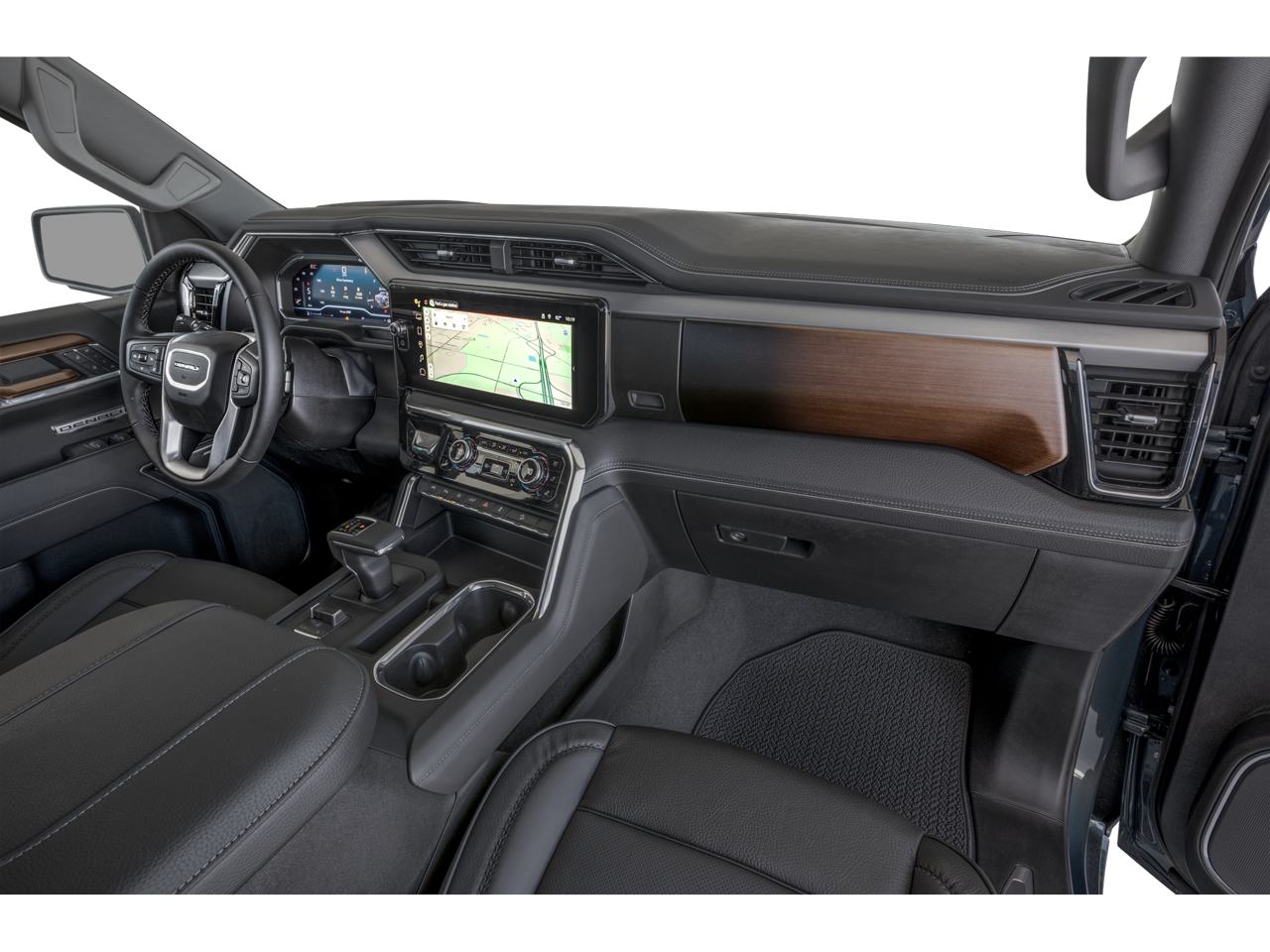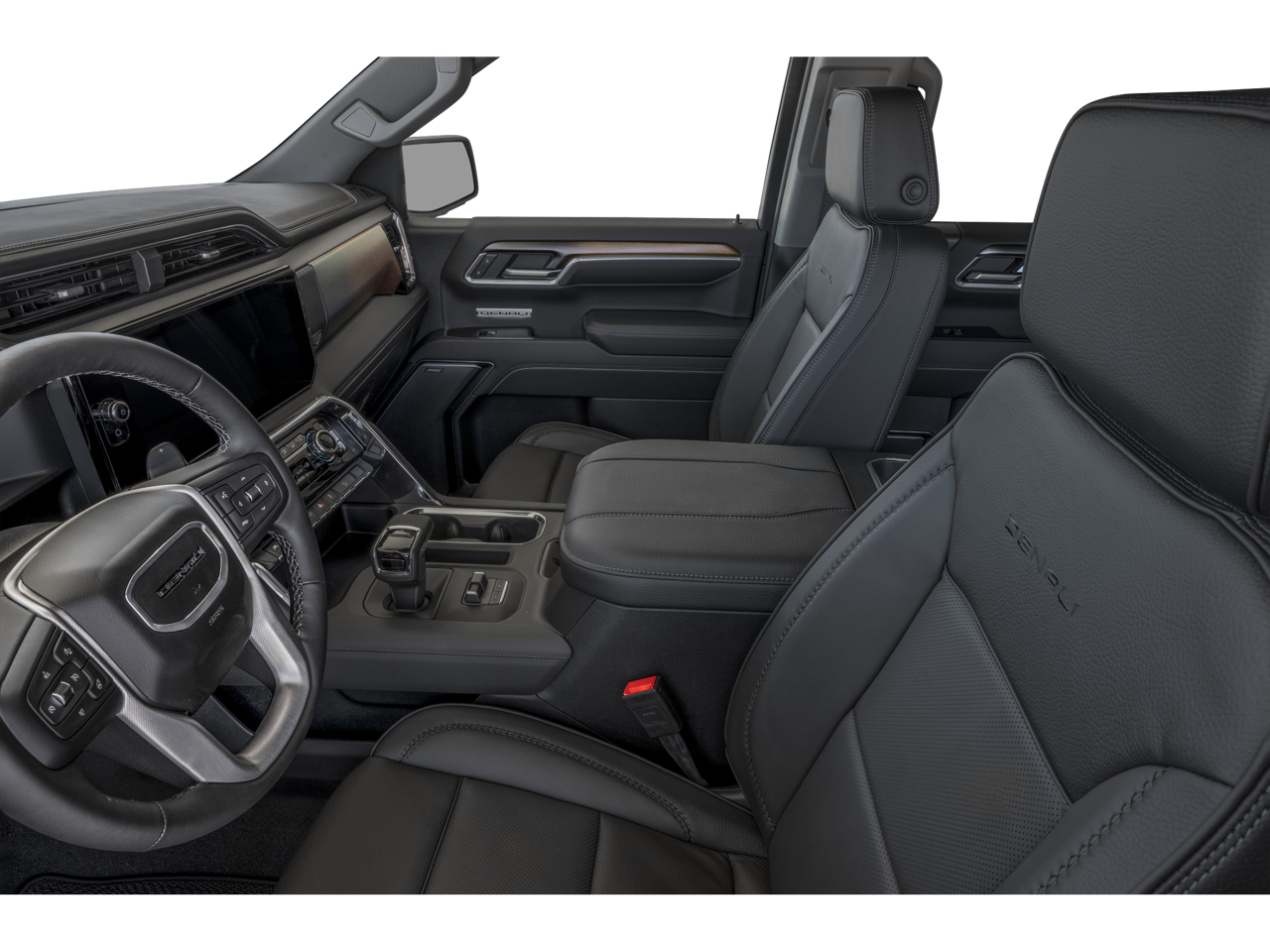 This vehicle features Denali Reserve Package (GMC MultiPro Power Steps, Power Sunroof, Wheel Locks (Set of 4) (LPO), and Wheels: 22 x 9 Painted Aluminum), Preferred Equipment Group 5SA (120-Volt Bed Mounted Power Outlet, 120-Volt Interior Power Outlet, 170 Amp Alternator, 2 Charge/Data USB Ports Inside Center Console, 2 Type-C Charge-Only Rear USB Ports, 2 USB Ports, Auto-Locking Rear Differential, Auxiliary External Transmission Oil Cooler, Bed View Camera, Chrome Header w/Signature Denali Chrome Grille, Chrome Recovery Hooks, Chrome Wheel To Wheel Assist Steps, Color-Keyed Carpeting Floor Covering, Deep-Tinted Glass, Electric Rear-Window Defogger, Floor-Mounted Center Console, Front Rain-Sensing Wipers, HD Surround Vision, Heated 2nd Row Outboard Seats, Heated Driver & Front Outboard Passenger Seating, Heavy-Duty Air Filter, Hill Descent Control, Hitch View, In-Vehicle Trailering System App, Integrated Trailer Brake Controller, Keyless Open & Start, LED Cargo Area Lighting, OnStar Services Capable, Perimeter Lighting, Power Door Locks, Power Front Passenger Windows w/Express Up/Down, Power Front Windows w/Driver Express Up/Down, Power Rake & Telescoping Steering Column, Power Rear Windows w/Express Down, Power Sliding Rear Window w/Rear Defogger, Premium Bose 7-Speaker Sound System, Push Button Start, Rear Cross Traffic Braking, Rear Pedestrian Detection, Rear Wheelhouse Liners, Remote Vehicle Starter System, SiriusXM w/360L Trial Subscription, Spray-On Pickup Bedliner w/GMC Logo, Steering Wheel Audio Controls, Theft Deterrent System (Unauthorized Entry), Trailer Camera Provisions, Trailer Side Blind Zone Alert, Ultrasonic Front & Rear Park Assist, Universal Home Remote, Ventilated Driver & Front Passenger Seats, Wi-Fi Hotspot Capable, and Wireless Charging), Technology Package (Multicolor 15 Diagonal Head-Up Display and Rear Camera Mirror), Trailering Package (Hitch Guidance), 10-Speed Automatic, 4WD, Atmosphere/Brownstone Leather, 12-Way Power Driver Seat Adjuster w/Lumbar, 12-Way Power Passenger Seat Adjuster w/Lumbar, 3.23 Rear Axle Ratio, 4-Wheel Disc Brakes, 7 Speakers, ABS brakes, Adaptive suspension, Air Conditioning, Alloy wheels, AM/FM radio: SiriusXM with 360L, Apple CarPlay/Android Auto, Auto High-beam Headlights, Auto-dimming door mirrors, Auto-dimming Rear-View mirror, Automatic temperature control, Brake assist, Buckle to Drive, Bumpers: body-color, Compass, Console-Mounted Safe (LPO), Delay-off headlights, Denali Premium Suspension w/Adaptive Ride Control, Driver door bin, Driver Memory, Driver vanity mirror, Dual Active Exhaust, Dual front impact airbags, Dual front side impact airbags, Electronic Stability Control, Emergency communication system: OnStar, Enhanced Automatic Emergency Braking, Following Distance Indicator, Forge Perforated Leather Seat Trim, Forward Collision Alert, Front anti-roll bar, Front Bucket Seats, Front Center Armrest, Front dual zone A/C, Front fog lights, Front Pedestrian Braking, Front reading lights, Front wheel independent suspension, Fully automatic headlights, Garage door transmitter, Genuine wood console insert, Genuine wood dashboard insert, Genuine wood door panel insert, Hard Folding Truck Bed Cover (LPO), Heated door mirrors, Heated front seats, Heated rear seats, Heated steering wheel, Illuminated entry, IntelliBeam Automatic High Beam On/Off, Lane Keep Assist w/Lane Departure Warning, Low tire pressure warning, Memory seat, Navigation System, Occupant sensing airbag, Outside temperature display, Overhead airbag, Overhead console, Panic alarm, Passenger door bin, Passenger vanity mirror, Power door mirrors, Power driver seat, Power passenger seat, Power steering, Power windows, Radio data system, Radio: Premium GMC Infotainment Audio System, Rain sensing wipers, Rear reading lights,